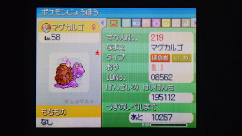 そんな訳で野性で出てきた色違いマグカルゴ、GETしました! やったー!